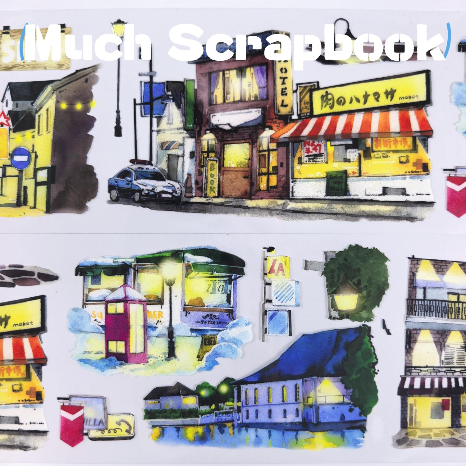 TEMU : 나이트 씬 시리즈 도시 상점 발광 클로즈업, 핸드 아카운트 콜라주 풍경 테이프, 고급 공예 PET 필름, 정교한 패턴, 다용도 및 사용 편리. 다이어리, 노트북 DIY 카드 프레임 장식에 적합
