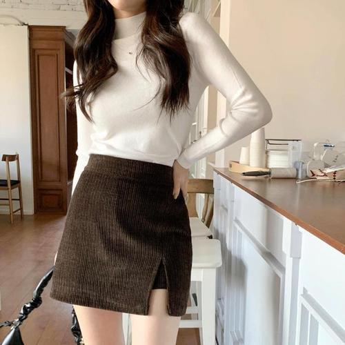 [신상오픈런]여성용 따뜻한 겨울 골덴 트임 미니스커트 바지 (44372483)