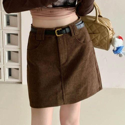 [옷자락] 여성 가을 겨울 하이웨이스트 골덴 미니스커트