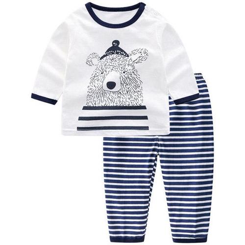 TEMU 귀여운 곰돌이 패턴의 아동용 잠옷 세트. 귀여운 소프트 스타일의 칼라 디자인으로 봄, 가을 홈웨어에 적합합니다. 십대용, 십대용
