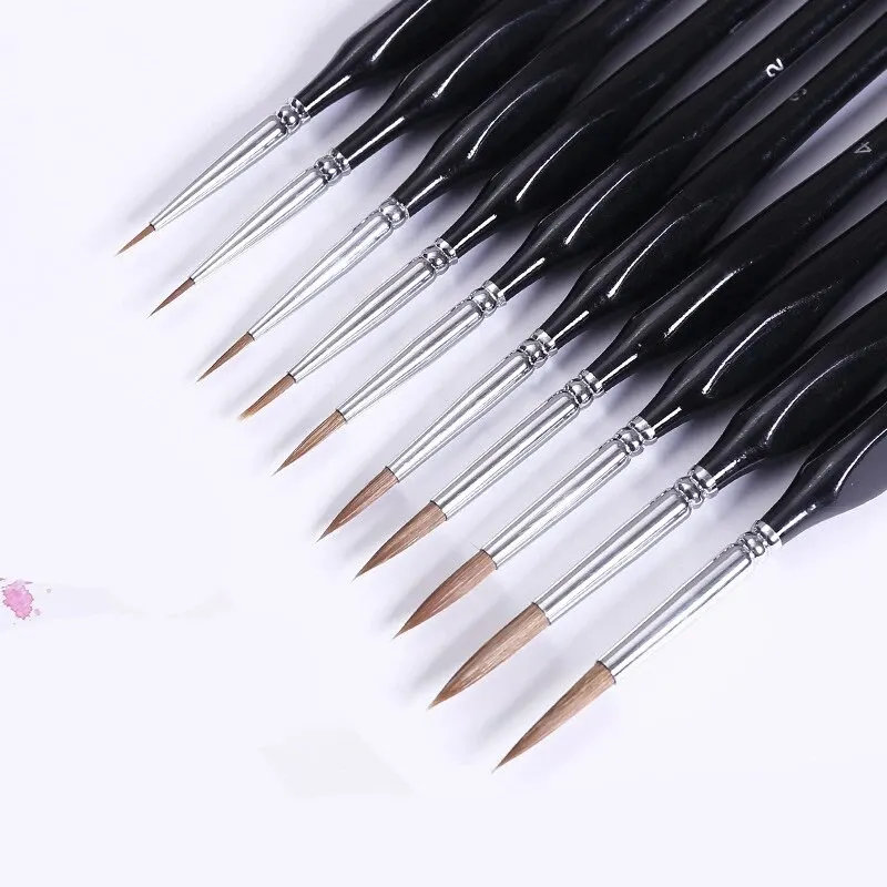10 조각 미세한 세부 페인트 브러시 미니어처 페인팅 브러쉬 키트 아크릴, 수채화, 오일, 얼굴, 네일 용 미니 페인트 브러시 세트