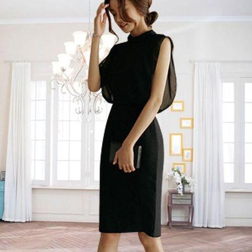 [셀러허브_여성트랜드패션]ONM 미니 베이직 반팔 원피스 쉬폰 셔링 프릴 하객 정장