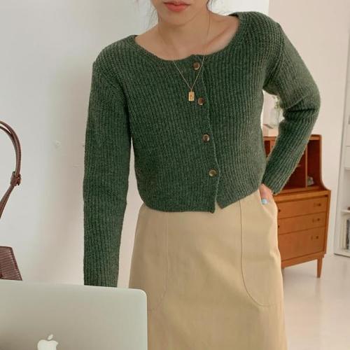 [미라클세븐][M7] 여자 베이직 미색 딥그린 슬림 FW 골지 가디건