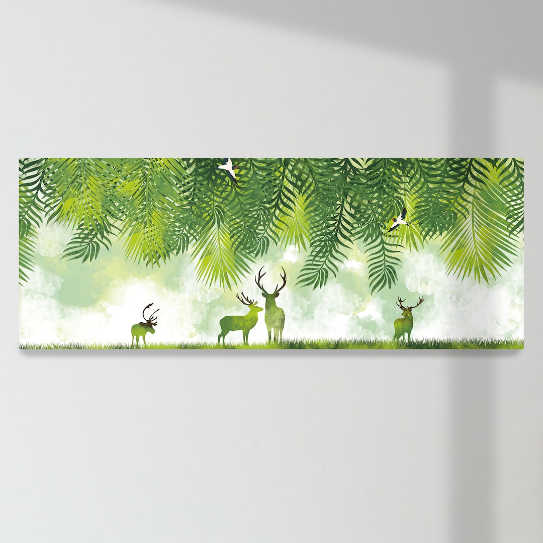 풍수 대형 와이드 인테리어 캔버스 액자 _푸른 식물 백록도