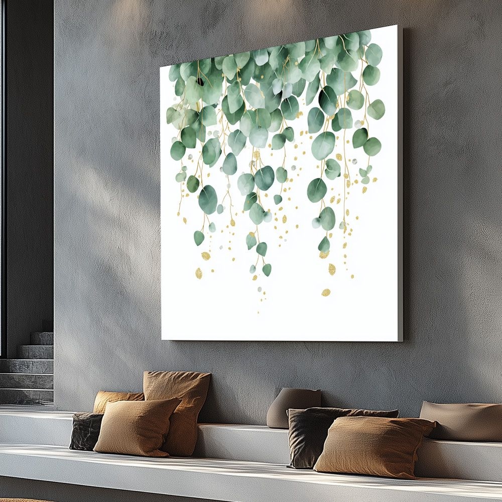 황금빛 유칼립투스 그림 캔버스액자 식물 나뭇잎 그린 모던 홈 카페 벽 인테리어 액자