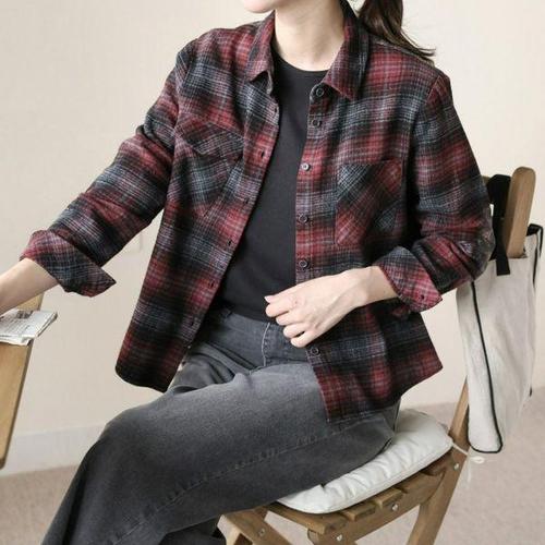 [디얼마미]올레 체크 기모 남방 /마담 미시 중년 여성 빅사이즈 40대 50대