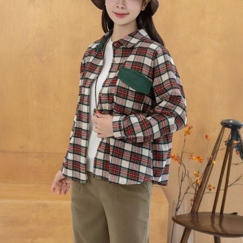 [디얼마미]골덴 배색 체크 기모 남방 /마담 미시 중년 여성 빅사이즈 40대 50대