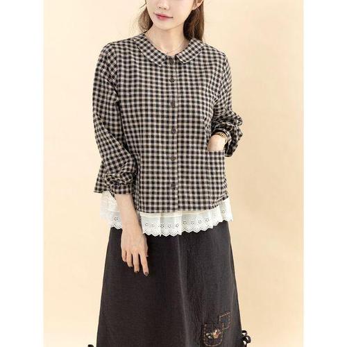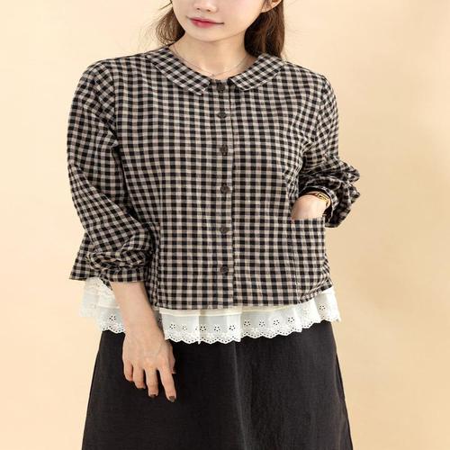 [디얼마미][디얼마미] 어벤 체크 블라우스 /마담 미시 중년 여성 빅사이즈 40대 50대