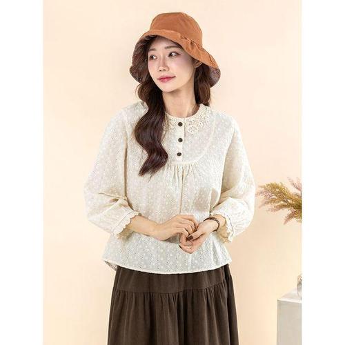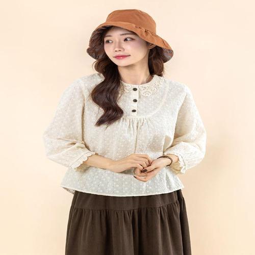 [디얼마미][디얼마미] 아일렛 고방 블라우스 /마담 미시 중년 여성 빅사이즈 40대 50대
