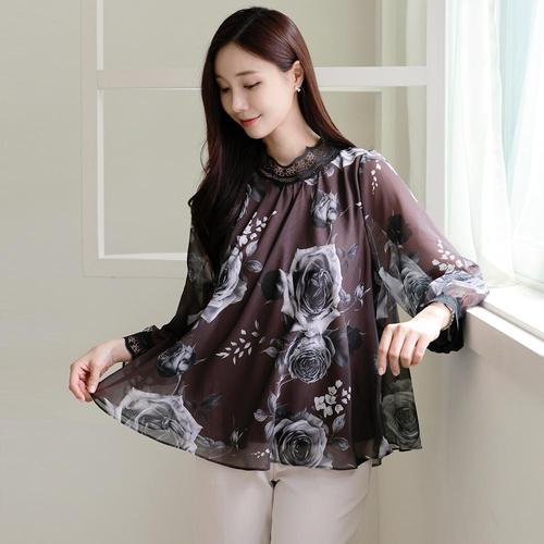 드리다 여성 가을 간절기 플라워 쉬폰 빅사이즈 레이스 블라우스 40-50대 미시 중년여성 엄마옷 하객 모임