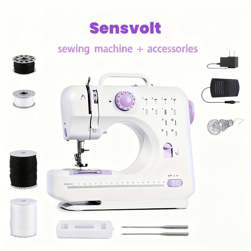TEMU EU표준 미니 가정용 재봉틀 - 12가지 내장 스티치, 휴대용 전동 재봉틀, 멀티 기능 페달, 야간 조명 및 원키 역회전, 초보자 친화적, DIY 공예, 할로윈 코스튬 및 크리스마스 선물에 이상적