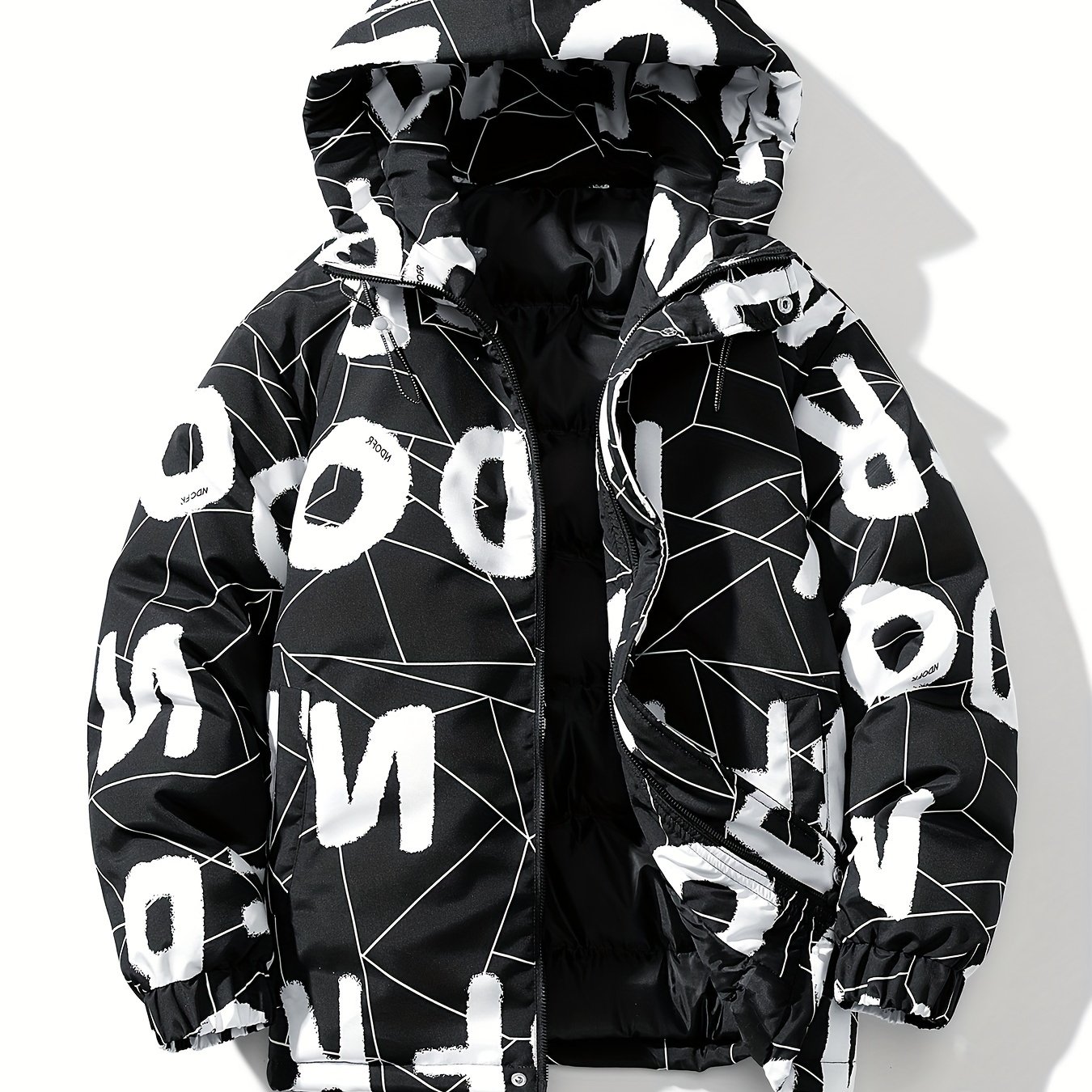 TEMU 남성용 후드 패딩 코트, 청소년을 위한 새로운 겨울 스타일, 미국 트렌디 브랜드 풀 레터 프린트, 학생들을 위한 다재다능하고 스타일리시한 겨울 재킷