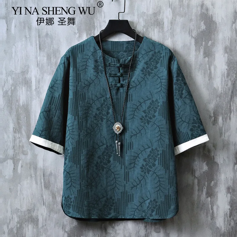 남성용 기모노 반팔 셔츠, 일본 스타일 티셔츠, 유카타 깃털 니트 가디건, 면 및 린넨 의류