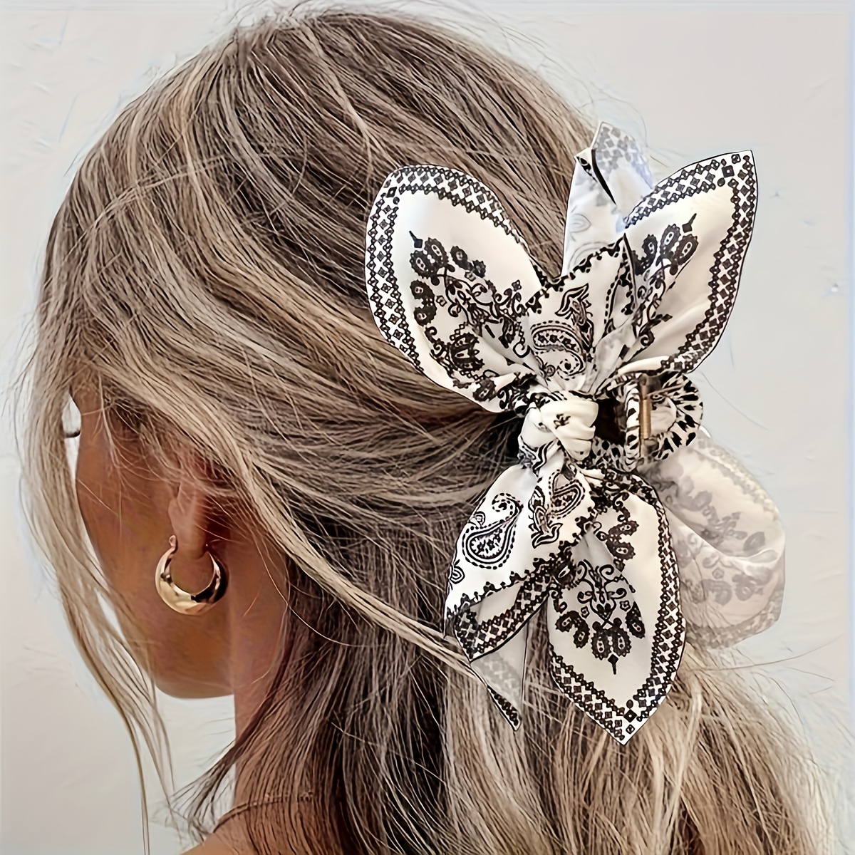 TEMU 빈티지 리본 머리핀 - 미끄럼 방지 강력 고정 블랙 & 화이트 페이즐리 패턴, 중간 사이즈 여성용 빈티지 헤어 액세서리, 캐주얼 및 포멀한 행사에 적합, 사계절 장식용