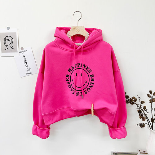 미즈큐즈 / 스마일 레터링 세미크롭 기모 후드 티셔츠 3컬러