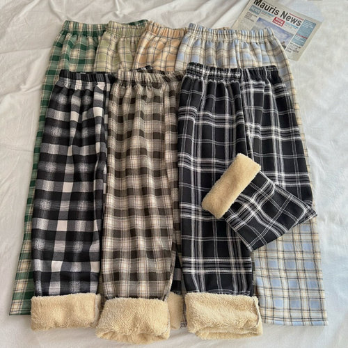 미즈큐즈 / 왕따뜻 양털안감 융기모 체크 밴딩 롱 와이드 팬츠 7c