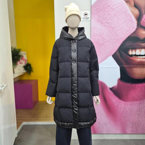 [베네통]베네통 샤이닝 배색 후드 덕다운 패딩점퍼 BAPDG2461 BK