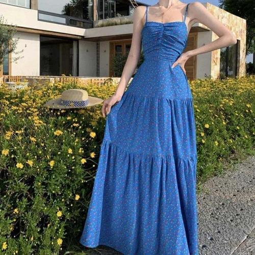 [오너클랜]인기상품 여름용 플라워 슬리브리스 밴딩 A라인 롱 드레스 해변 캐주얼 원피스 [WFLL7O7_260304]