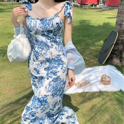 [오너클랜]인기상품 블루 플라워 나시 원피스 비치웨어 루즈핏 여름 뷔스티에 해변룩 [WFLI0JA_260227]