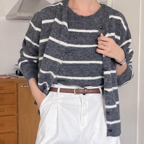 [다잇템]여자 니트나시 카디건 줄무늬 U넥 FW 세트