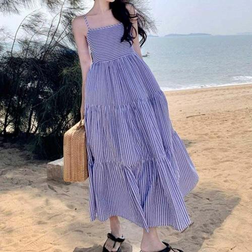 [오너클랜]인기상품 여성용 스트라이프 롱 나시 원피스 여름용 H라인 데일리 휴가지룩 [WFLHYBN_260227]