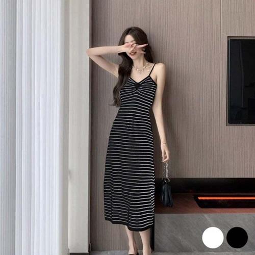 [오너클랜]인기상품 여성용 나시 니트 롱 스커트 원피스 스트라이프 패턴 [WFLIG54_260301]