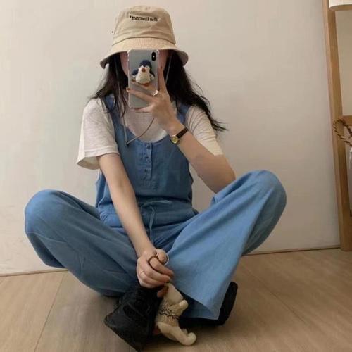 봉봉스토리 여성용 피온드 끈조절 와이드 멜빵 점프슈트 루즈핏 오버롤 빅사이즈 임부복