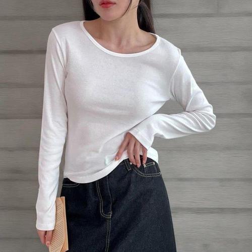[파라노말샵]5색 골지 라운드 롱 소매 긴팔 티셔츠 (파라노말샵)