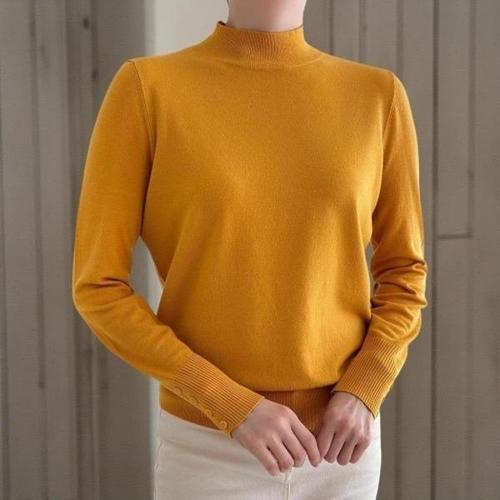 [옷자락][다잇템] 여성 일상복 모크넥 8색 티셔츠 단추 롱슬리브 니트_22571135_588870