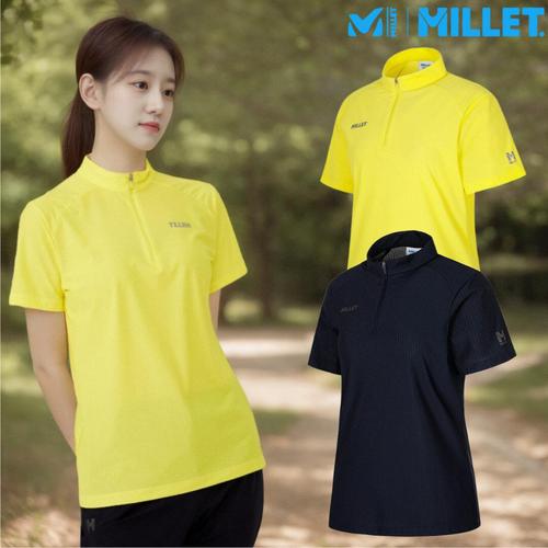 [밀레]밀레 반팔 집업 티셔츠 여성 냉감 신축성 기능성 아웃도어 등산 스포츠 티_CA