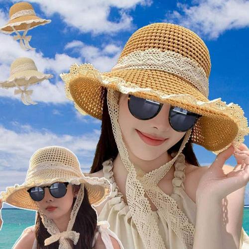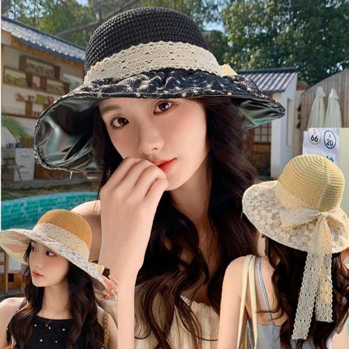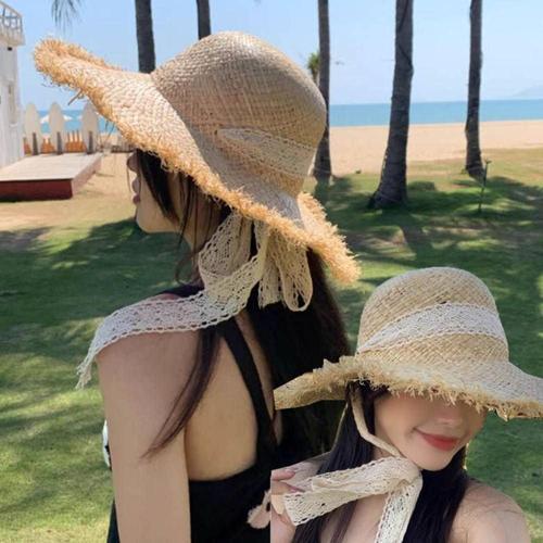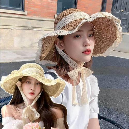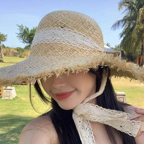 여성 뜨거운 여름 레이스 잔꽃무늬 바캉스 밀짚모자 WFHM7EH