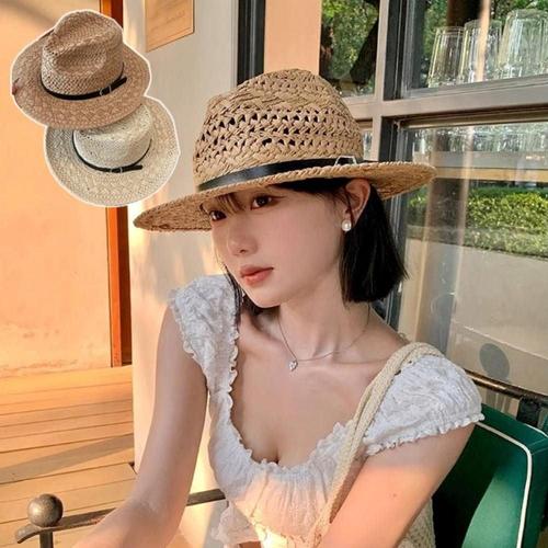 여성 플랫 썸머햇 밀짚모자 여름 페도라 파나마햇 WFHJV78