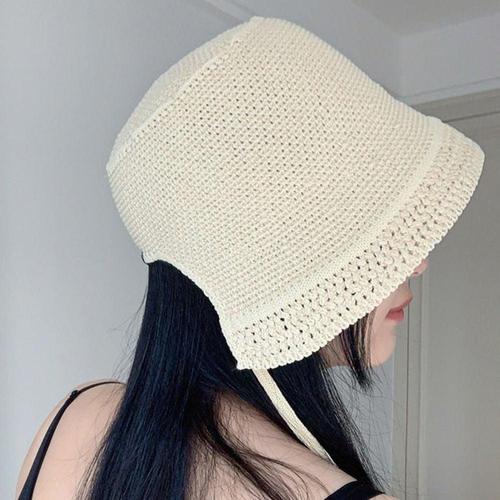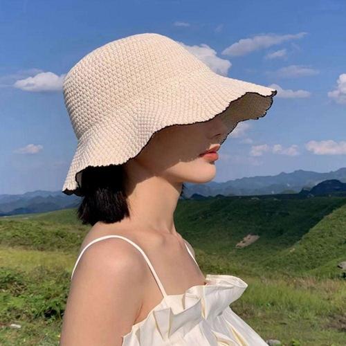 여자 뒷트임 햇빛차단 니트 버킷햇 밀짚모자 휴가룩 WFHN2D9