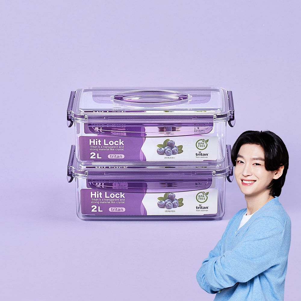 에코센스 히트락 올트라이탄 밀폐용기 대형 핸들형 직사각 2000ml 2L, 2개