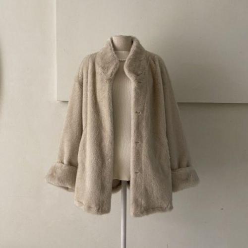여성 루즈핏 페이크 밍크 퍼 롱기장 코트 겨울 포멀룩