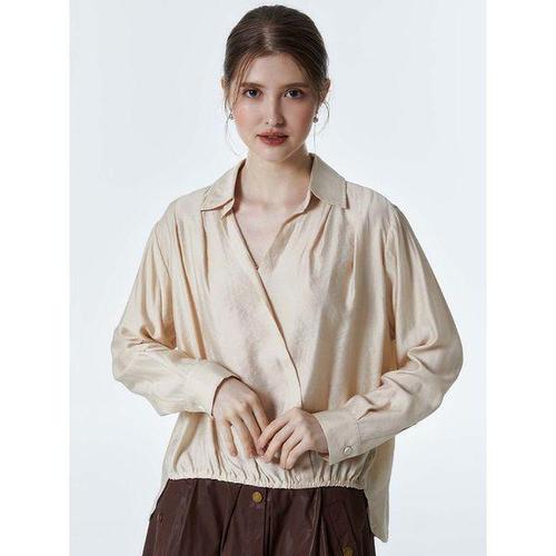 [샵앤]여성 슬릿 카라넥 밑단밴딩 언발 샤이니 긴팔 블라우스 CL-WBL0396