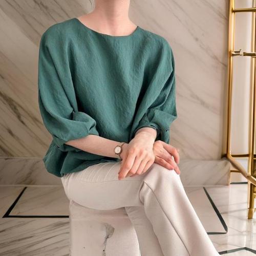 여성 레이온 라운드넥 밑단밴딩 40대 블라우스