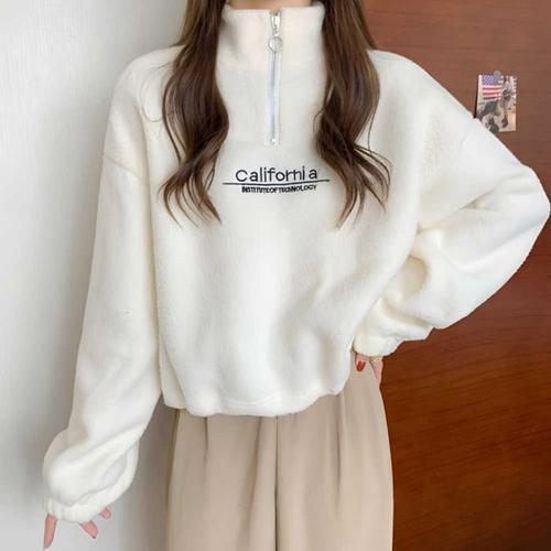 [주식회사 브이와이][JHQRJFBT_4B]레터링 여성가을니트 반집업 밑단스트링 (24036881A)