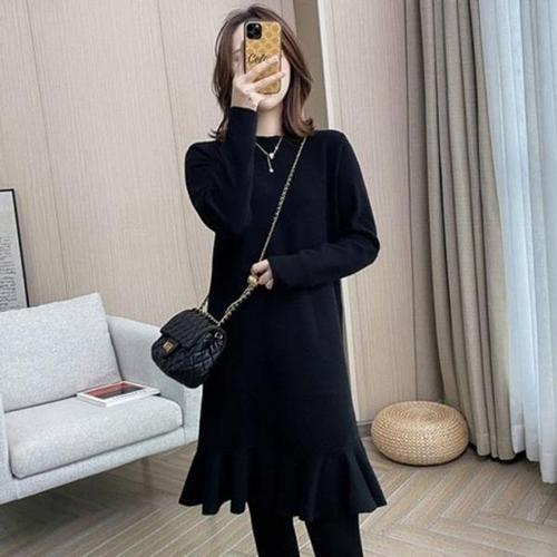 [엄지척]여성스런 베이직 데일리 프릴밑단 니트 보온 원피스_19951202_667501