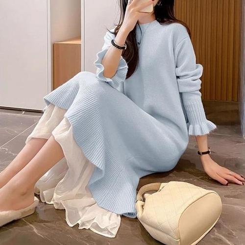 [엄지척]소매 밑단 프릴 디자인 레이어드룩 니트 롱원피스_19957527_667501
