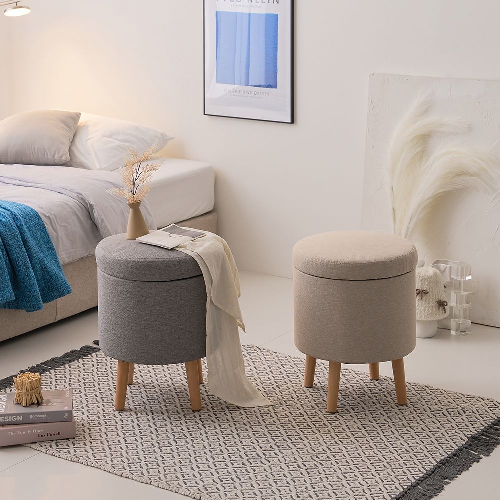 쿠폰가 21,243원 / 스툴 원목다리 패브릭 수납 화장대 의자 3colors