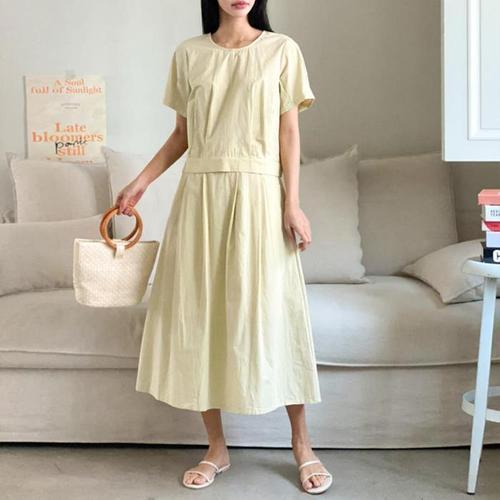 [유야]여성 바스락 나일론 반팔티 밴딩 롱스커트 세트 -FSST0079- 여름