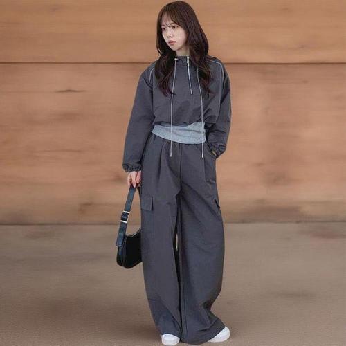 [신상오픈런]여성용 바스락 아노락 크롭 상의와 와이드 팬츠 세트