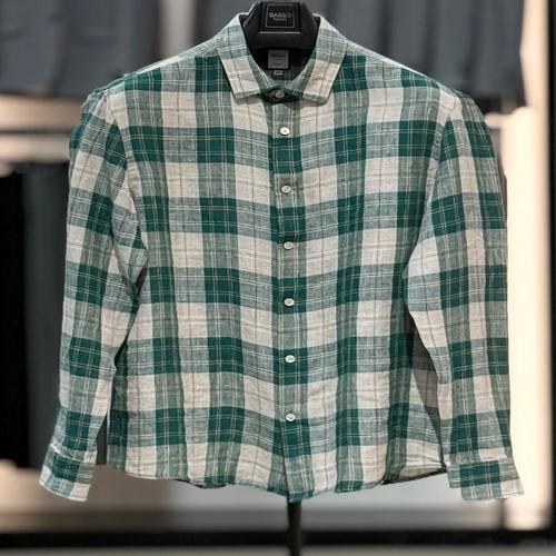 [바쏘옴므]타탄체크 마 100% 린넨 캐주얼 셔츠 WSZ1TT29A GN_SC