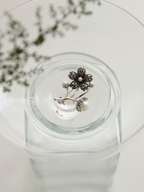 [제이로렌] 바이데이지 진주 플라워 마카사이트 실버 브로치 Bb0464