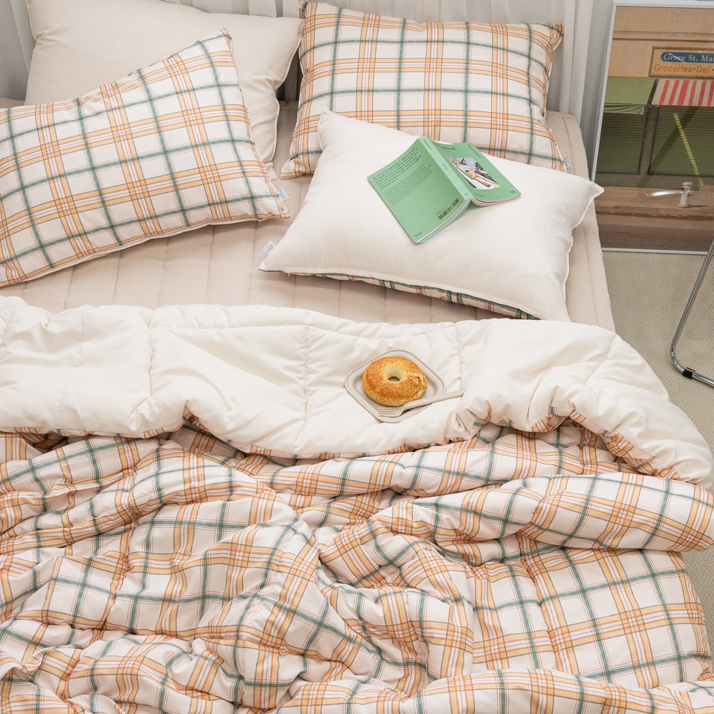 노엔 사계절 체크 차렵이불 베개커버 패드 침구 세트 슈퍼싱글 퀸 부드러운 이불 SS Q