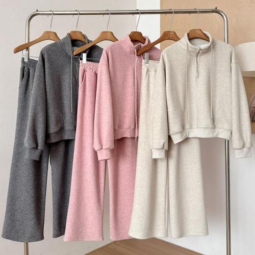 트레이닝복 긴팔세트 여성 운동복 한겨울 슬림핏 니트 와이드 바지 세트 트레이닝 캐주얼 투피스 힛템