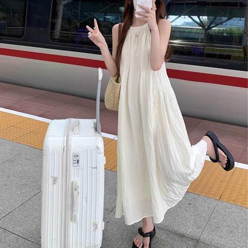 [오너클랜]인기상품 바캉스 휴가 민소매 홀터넥 나시 롱 원피스 휴양지 룩 [WFLS7XR_260123]