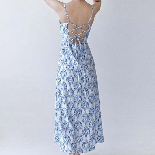 [셀럽하우스]바캉스룩 QDRN1404 반전뒷태 여성 핀턱 롱원피스 끈타입