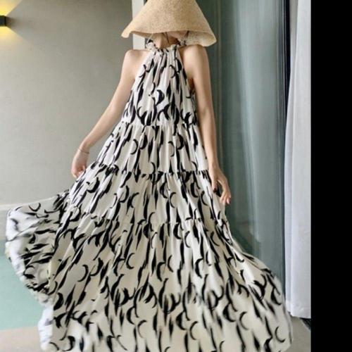 [오너클랜]인기상품 비치룩 홀터넥 루즈핏 롱원피스 바캉스 휴양지 패턴 드레스 [WFLINOE_260301]